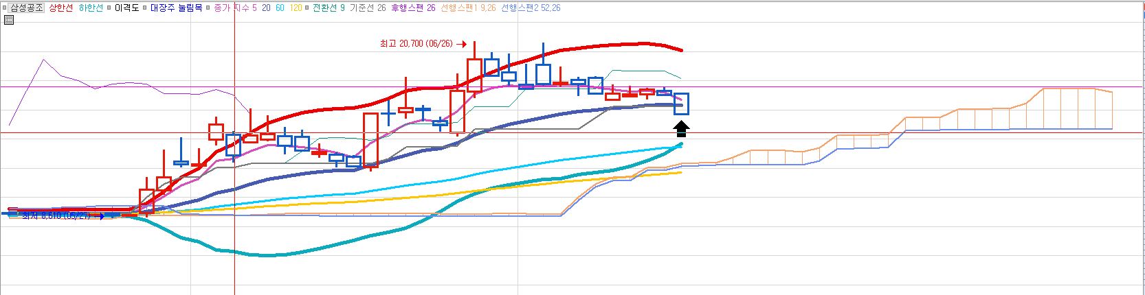 ㄴ) 기준선 : (과거 26일간의 최고가+최저가)/2