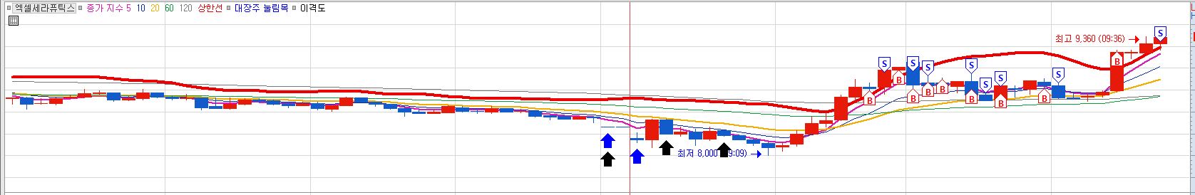 ㄱ) 에스와이 스틸텍이 제일 맞는 종목이였으나, 눌리지 않고 바로 올라가버려 매매 못함.